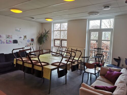 I lokalet findes der også 2 sofagrupper og små sofaborde der kan bruges til hygge, leg med børn, højtlæsning, og meget andet.