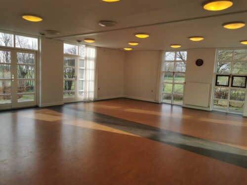 Multisalen er et enkelt og lyst rum med vinduer mod syd, øst og vest. Du kan bruge den til yoga, foredrag, dans og meget andet.