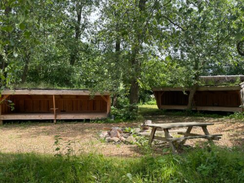 Når du booker et shelter får du også adgang til et toilet, overdækket udekøkken, samt terrasse og borde/bænke, der kan tilgås fra haven.